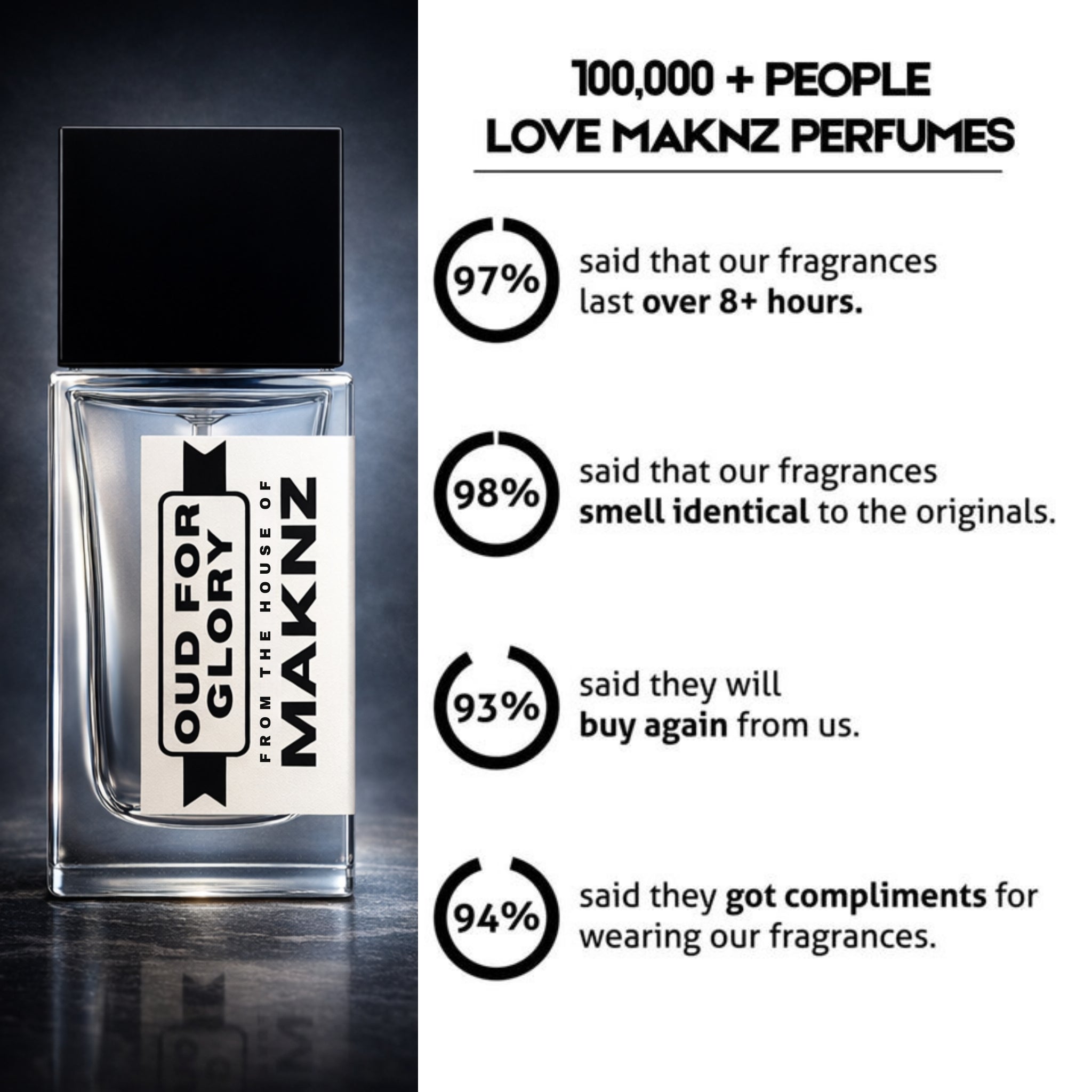 Thanks to our 30% oil parfum extrait formula, MAKNZ PERFUMES ensures long-lasting fragrances.
