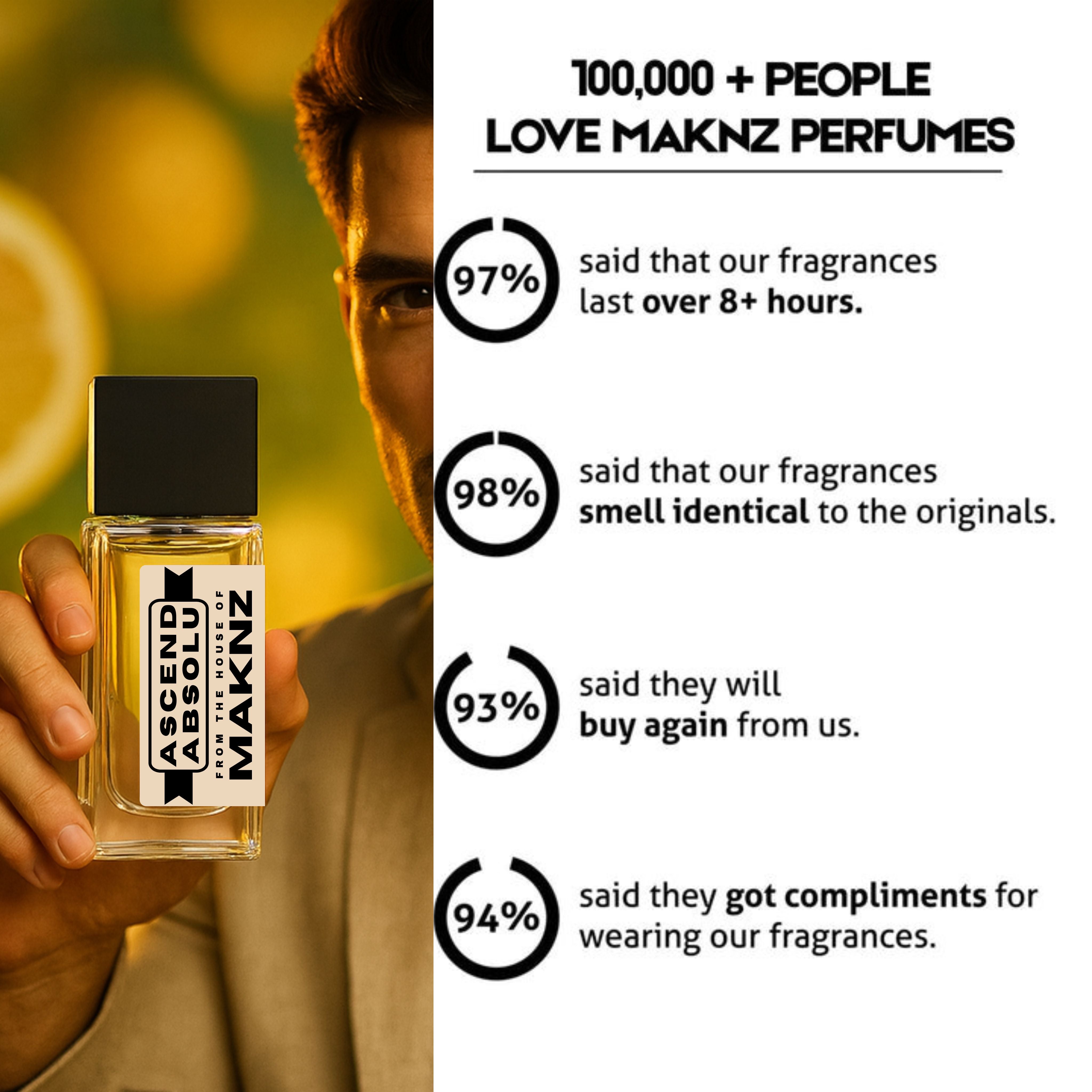 Thanks to our 30% oil parfum extrait formula, MAKNZ PERFUMES ensures long-lasting fragrances.