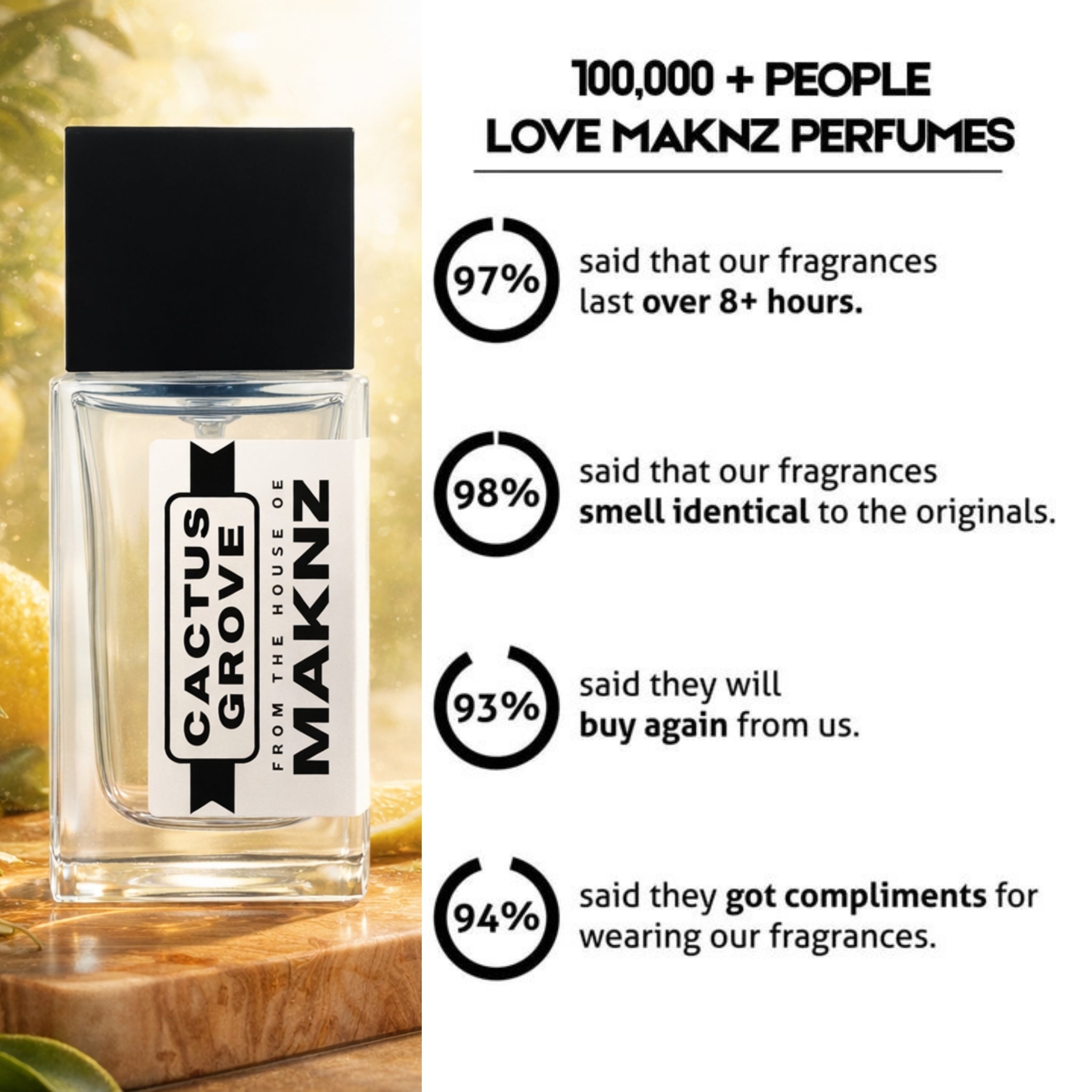Thanks to our 30% oil parfum extrait formula, MAKNZ PERFUMES ensures long-lasting fragrances.