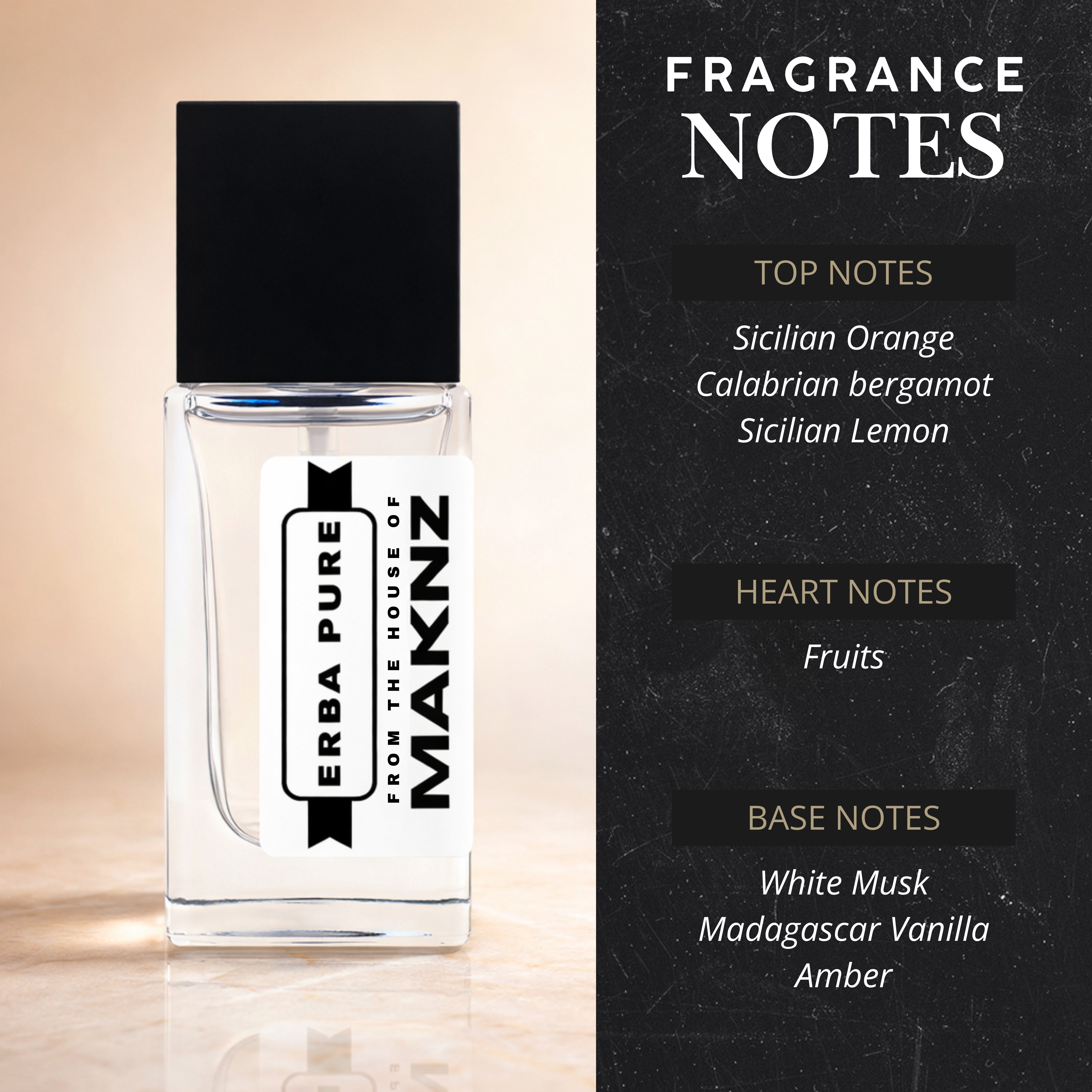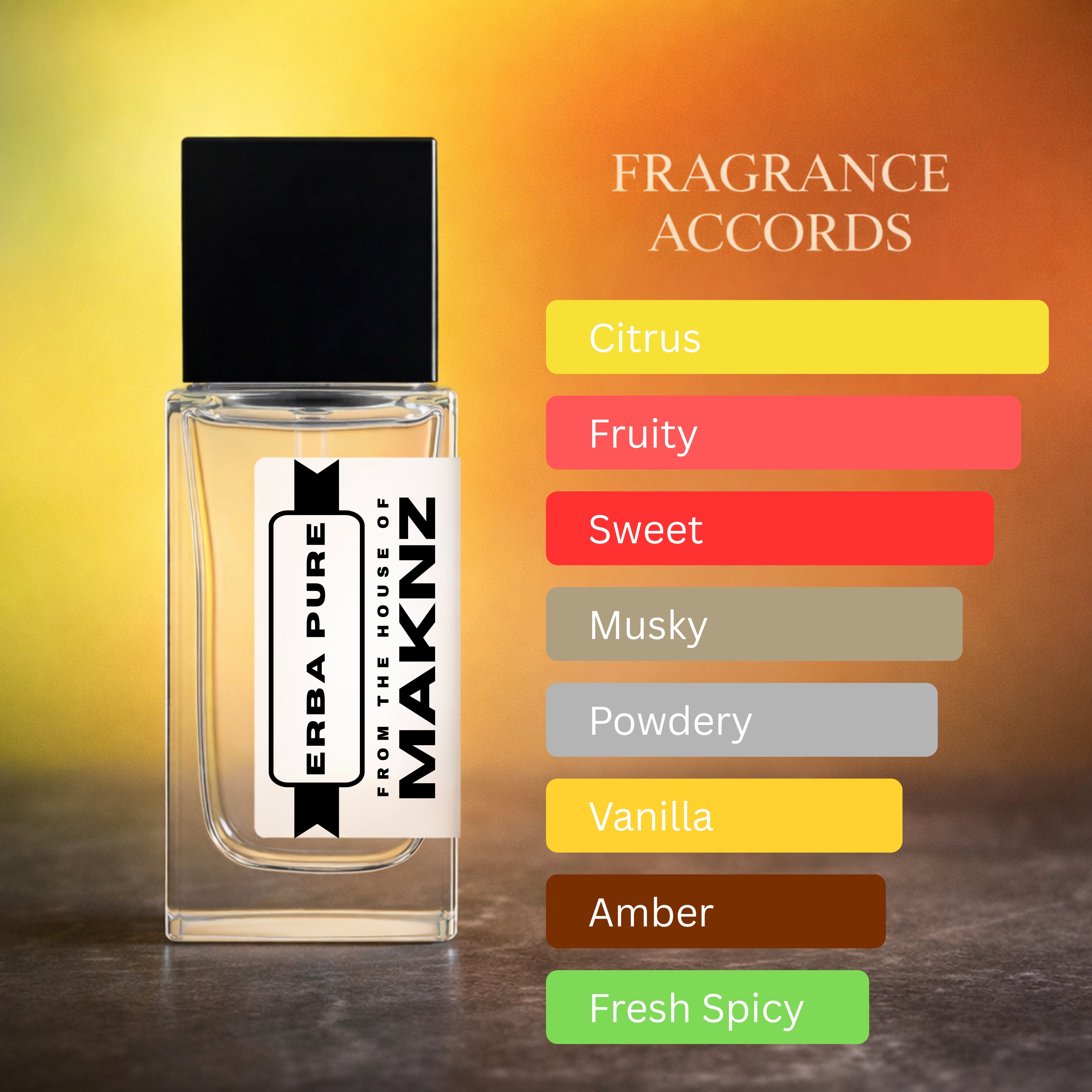 Erba Pure is a vibrant and irresistible interpretation of Xerjoff Erba Pura โ crafted for those who love bold fruity sweetness balanced with creamy warmth and modern elegance. Itโs a unisex fragrance that feels playful yet luxurious, fresh yet deeply comforting.