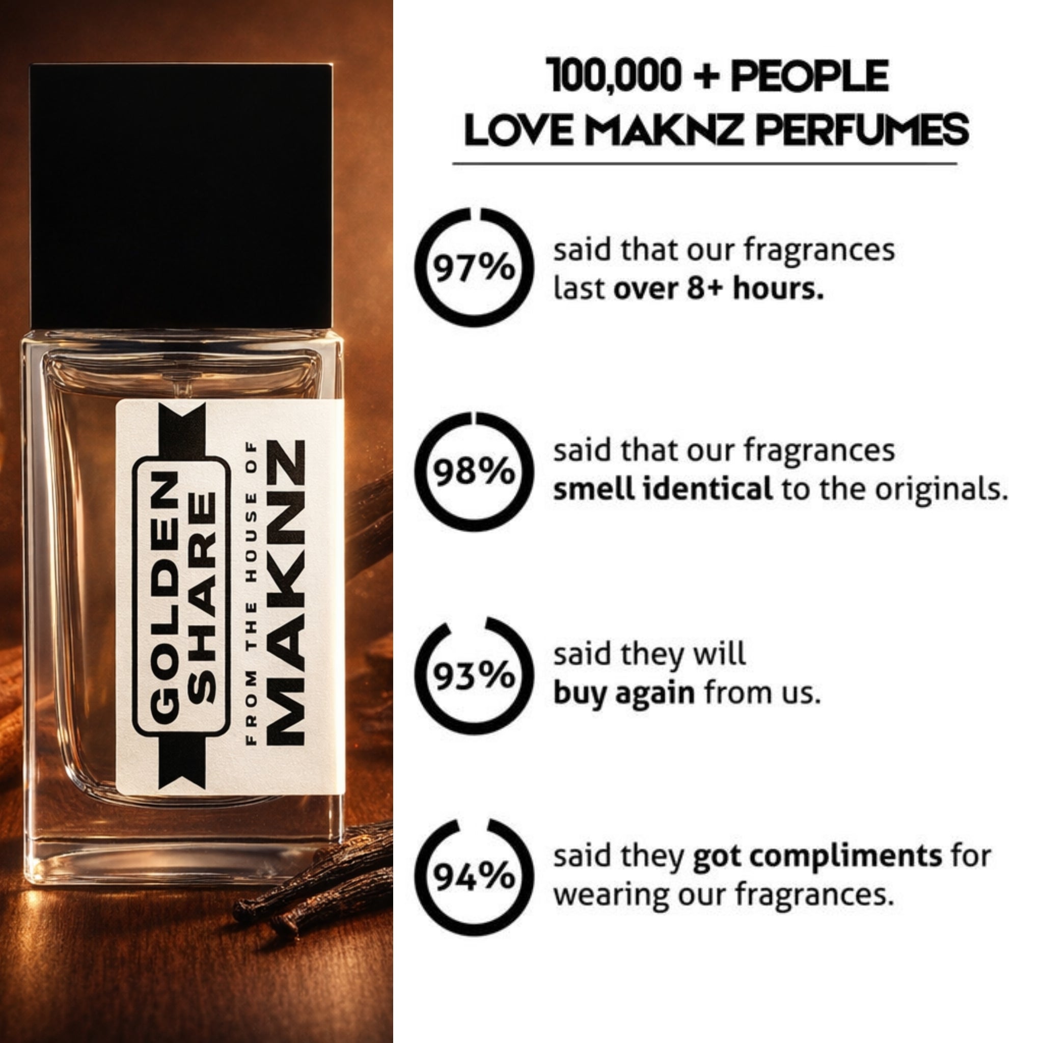 Thanks to our 30% oil parfum extrait formula, MAKNZ PERFUMES ensures long-lasting fragrances.