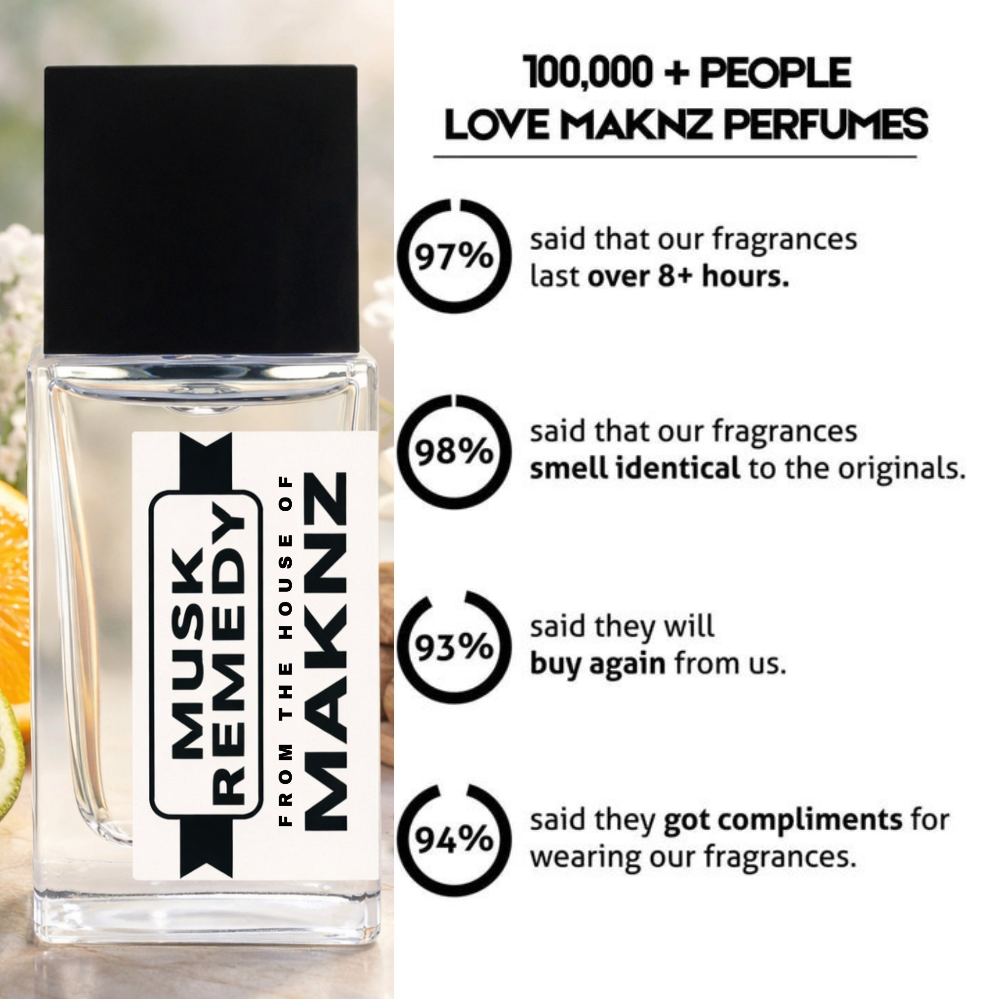 Thanks to our 30% oil parfum extrait formula, MAKNZ PERFUMES ensures long-lasting fragrances.