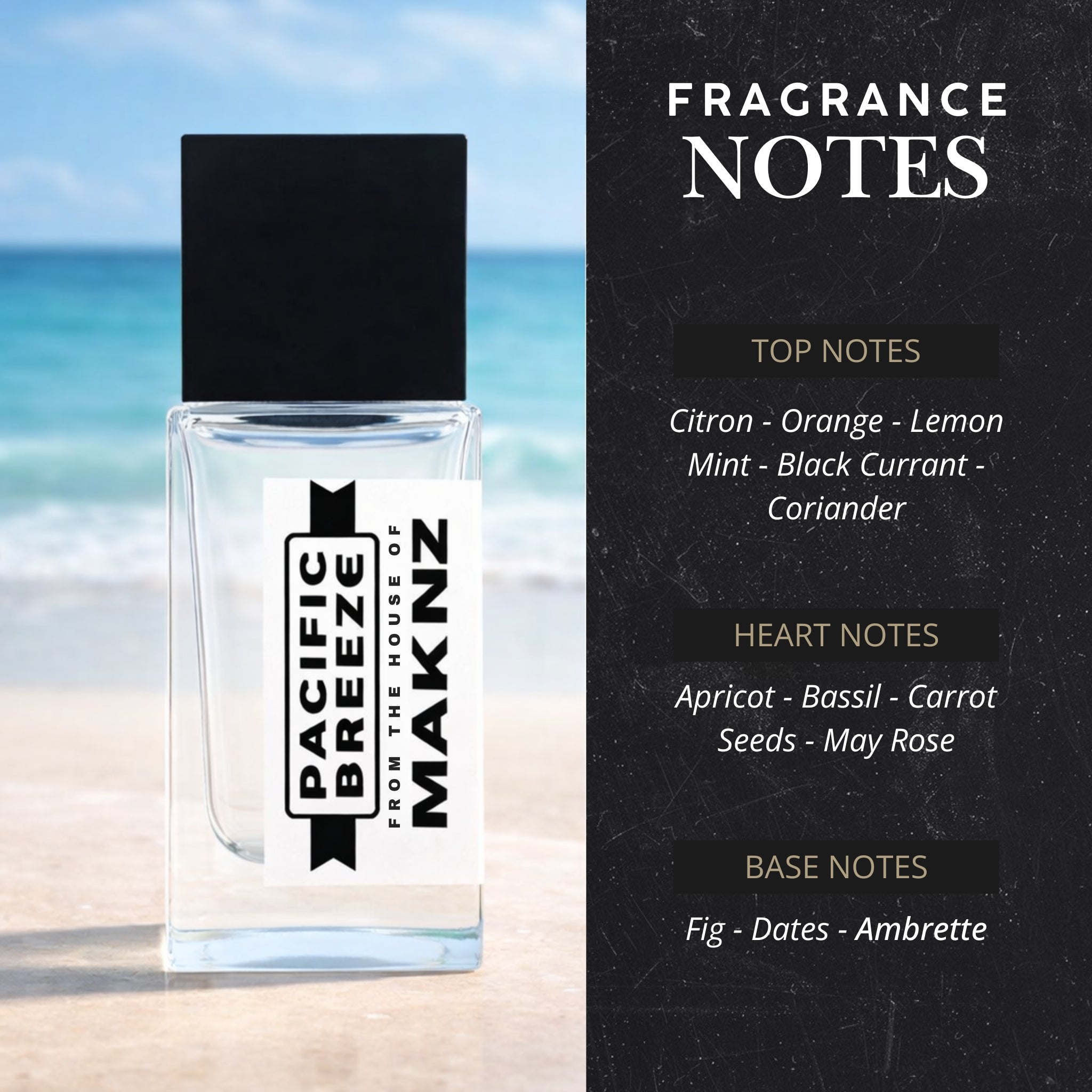 Base Notes: Fig, Dates, Ambrette, Musk