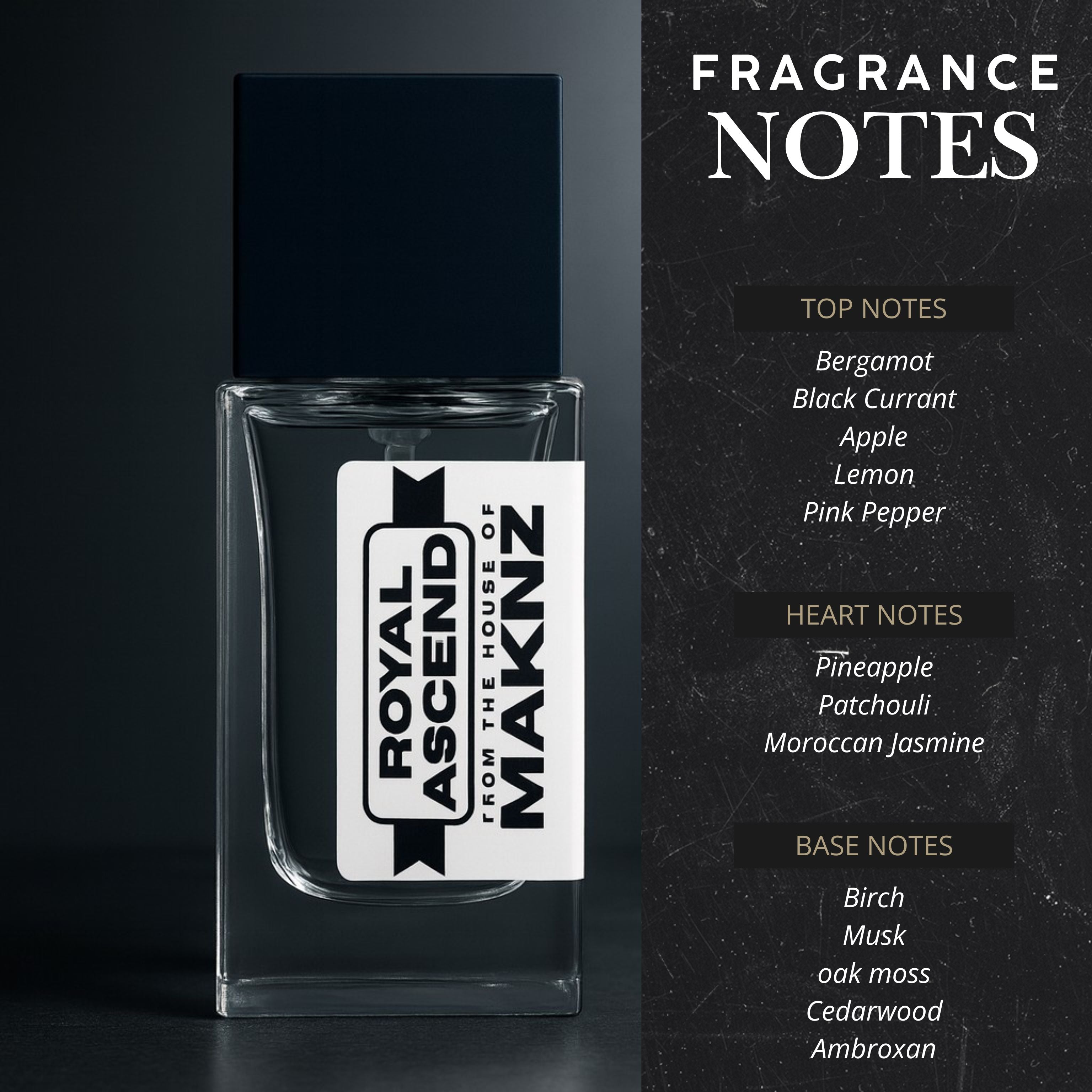 TOP NOTES : Bergamot, Black Currant, Apple, Lemon & Pink Pepper