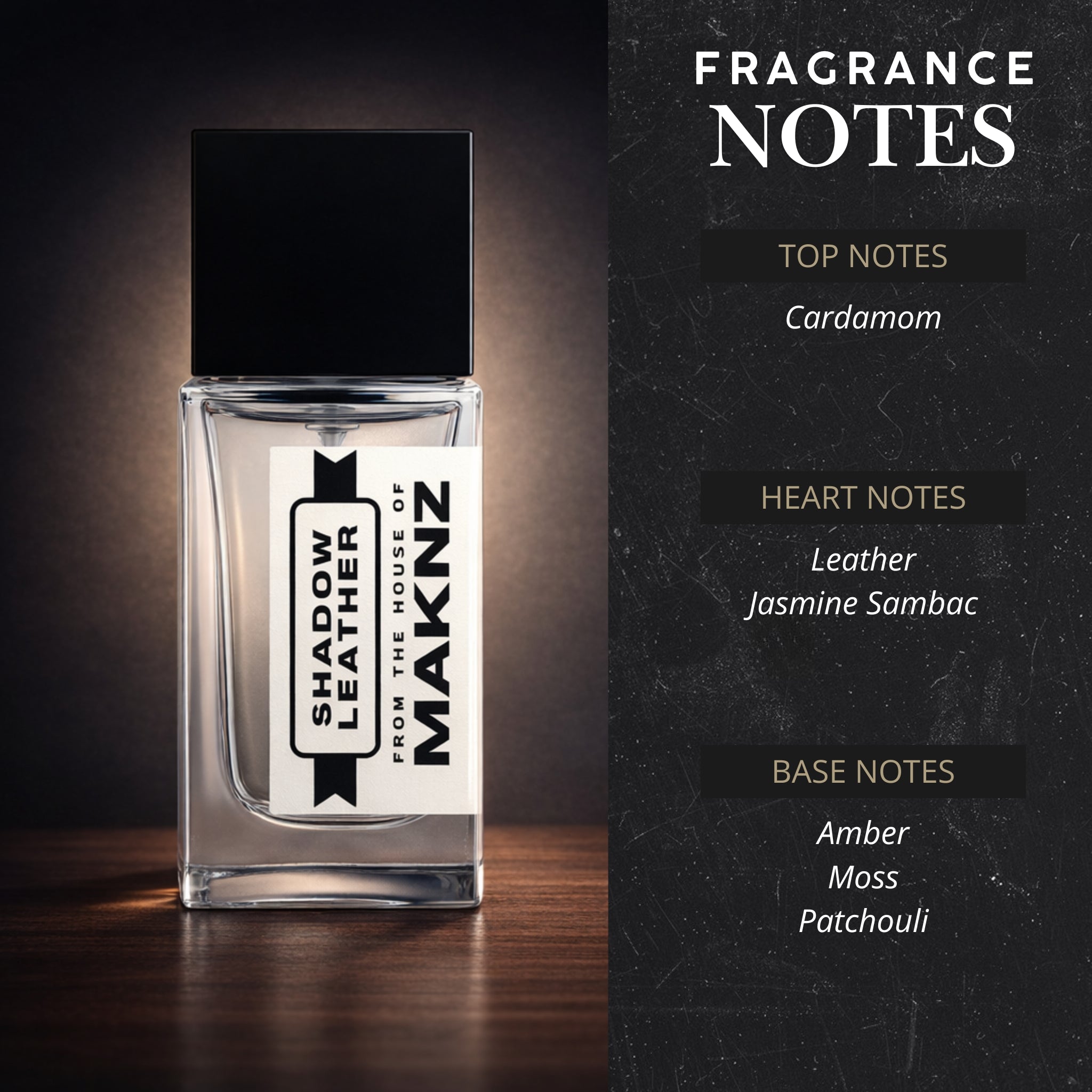 Base Notes: Leather, Woody Notes, Tobacco