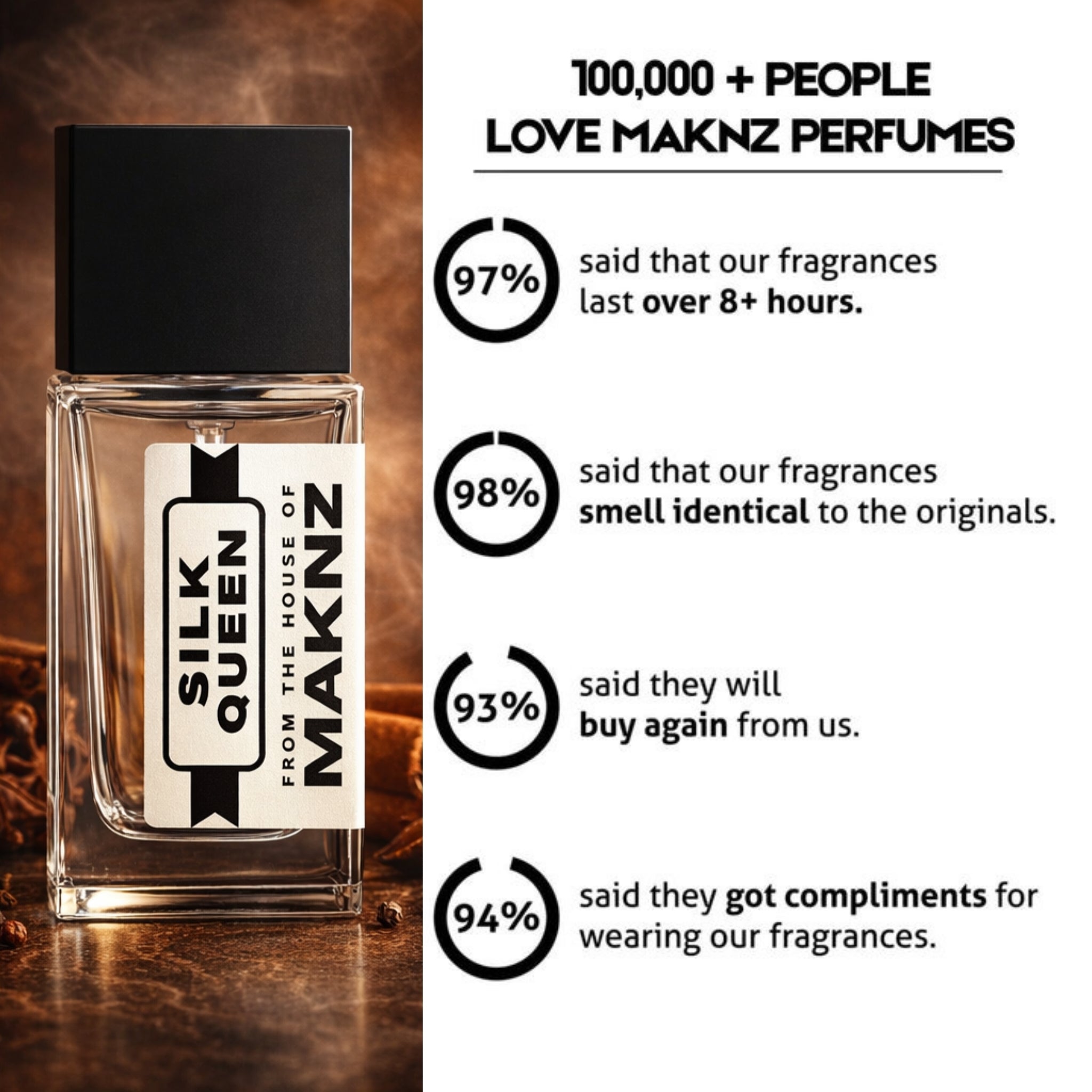 Thanks to our 30% oil parfum extrait formula, MAKNZ PERFUMES ensures long-lasting fragrances.